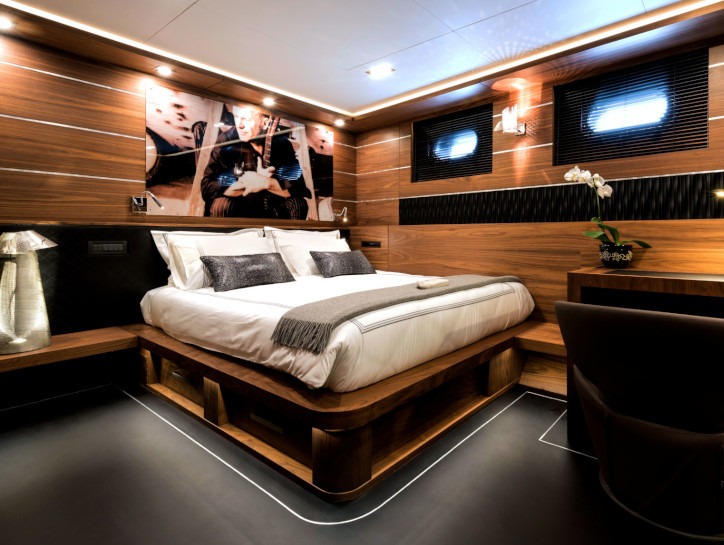 Boasting a striking pearlescent black hull, this superyacht has been superbly penned by the yard's in-house team, with interior design by K-Architectes.