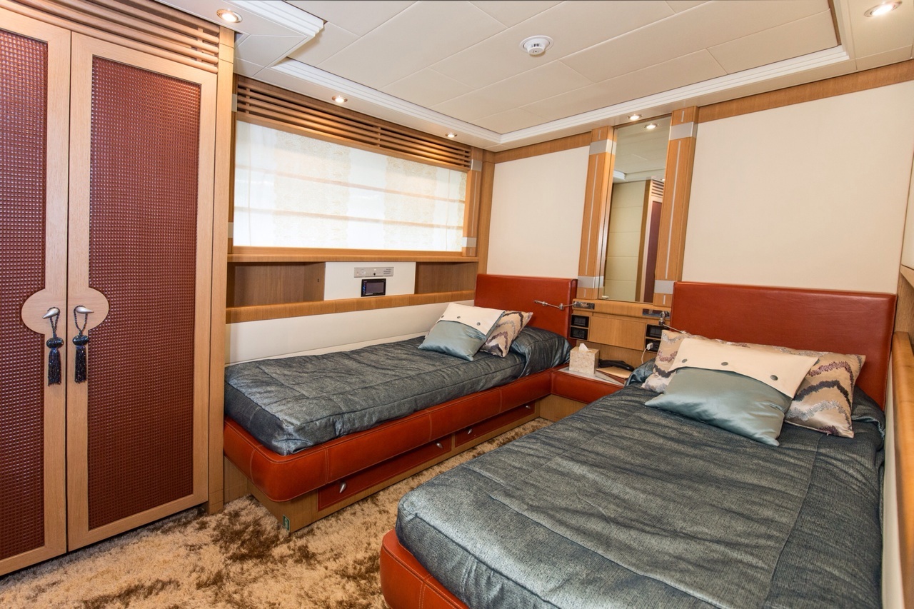 Guest accommodation in in 1 master stateroom forward on the main deck and 4 cabins on the lower deck.