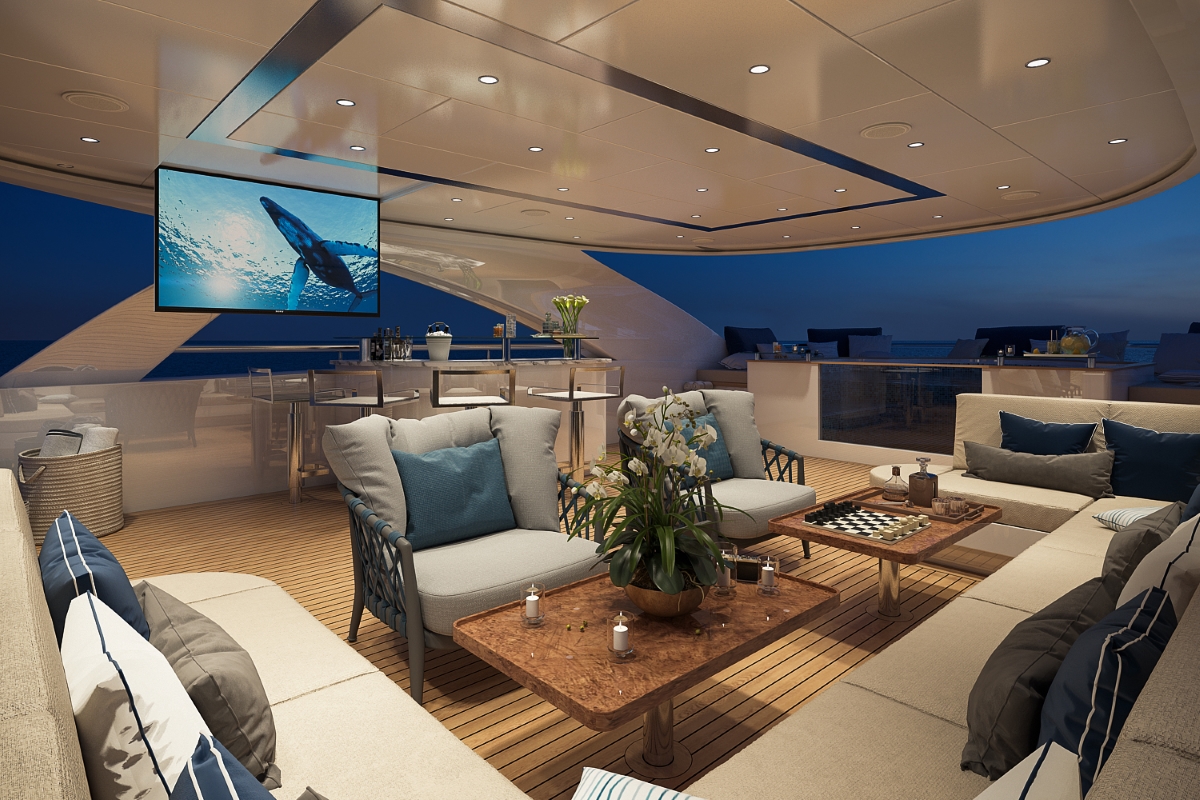 She features exterior design and naval engineering by Unique Yacht Design and elegant interiors by H2. Accommodation onboard is offered in five cabins for ten charter guests.