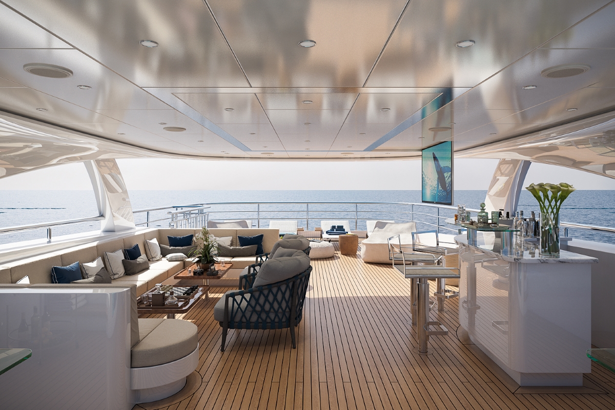 The top deck features similarities with the designer's award-winning Squalo Bianco superyacht concept.