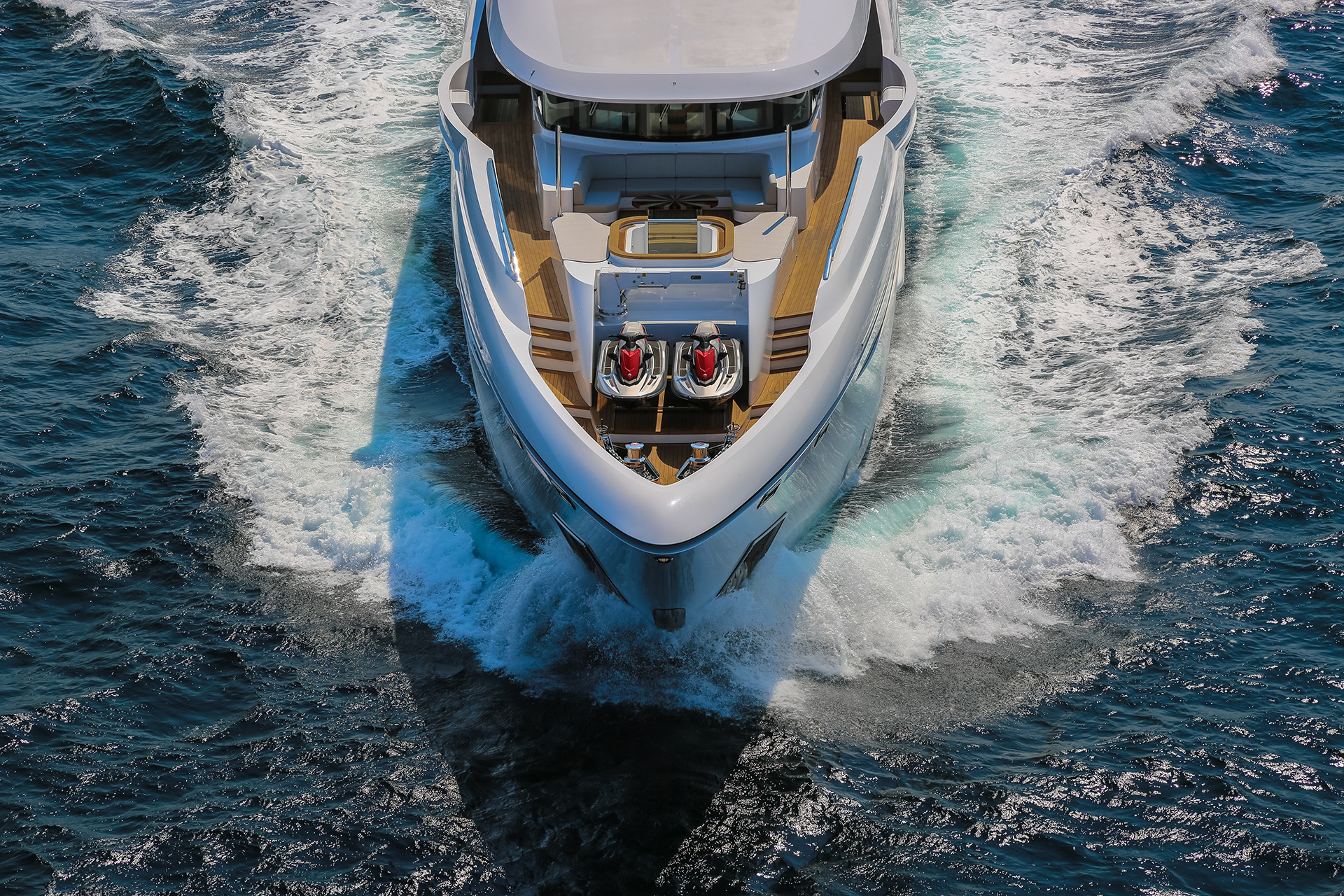 She features exterior design and naval engineering by Unique Yacht Design and elegant interiors by H2. Accommodation onboard is offered in five cabins for ten charter guests.