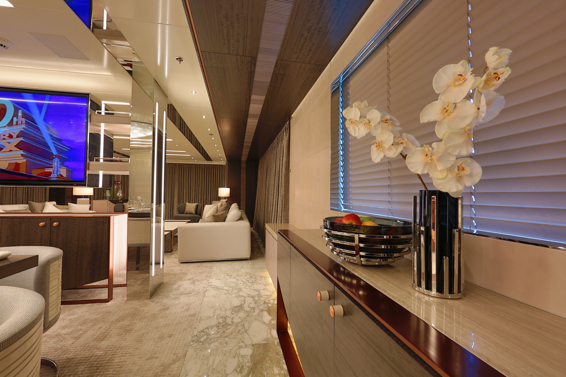 She features exterior design and naval engineering by Unique Yacht Design and elegant interiors by H2. Accommodation onboard is offered in five cabins for ten charter guests.