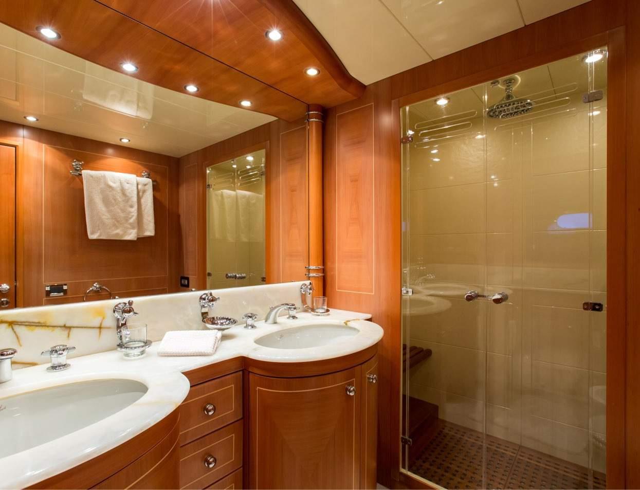 Powered by twin MTU engines, she cruises at 28 knots and can reach exhilarating top speeds of 32 knots.