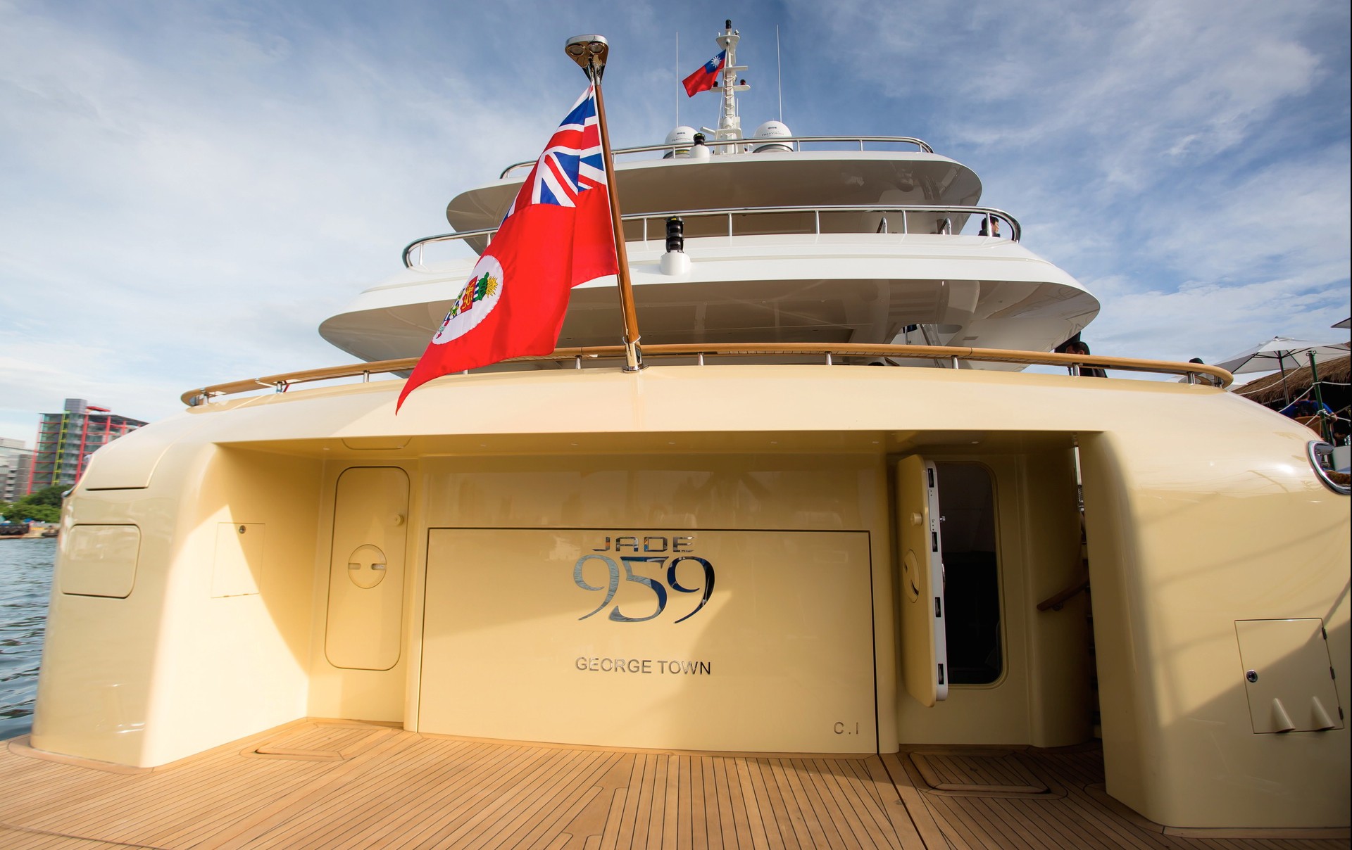 NOTABLE FEATURES for JADE 959: Lovely timeless interior decor ~ Main deck master stateroom ~ Three exterior decks ~ Gym ~ Jacuzzi ~ Stabilizers ...