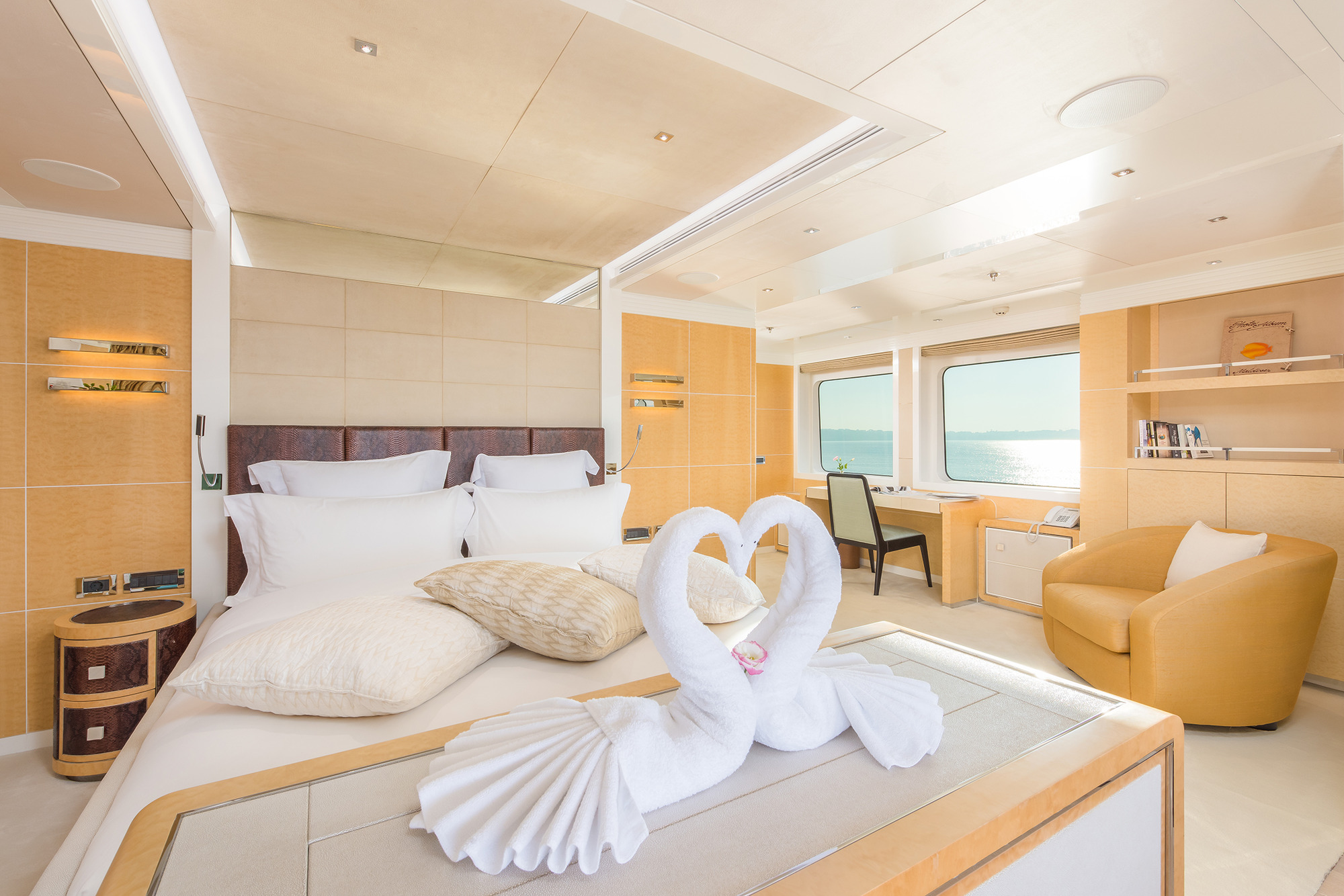 The vessel offers stylish accommodation for up to 12 charter guests, in 6 cabins.