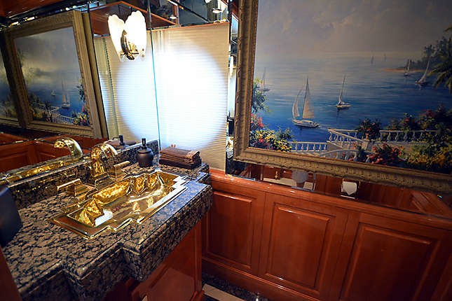 The main salon offers lounge seating on port and starboard, each with plush sofas, occasional chairs and coffee tables. Further forward is the formal dining table, which can be left as semi open plan, or enclosed by pocket doors. A marble floored foyer leads to the lower guest cabins and master cabin on the main deck.