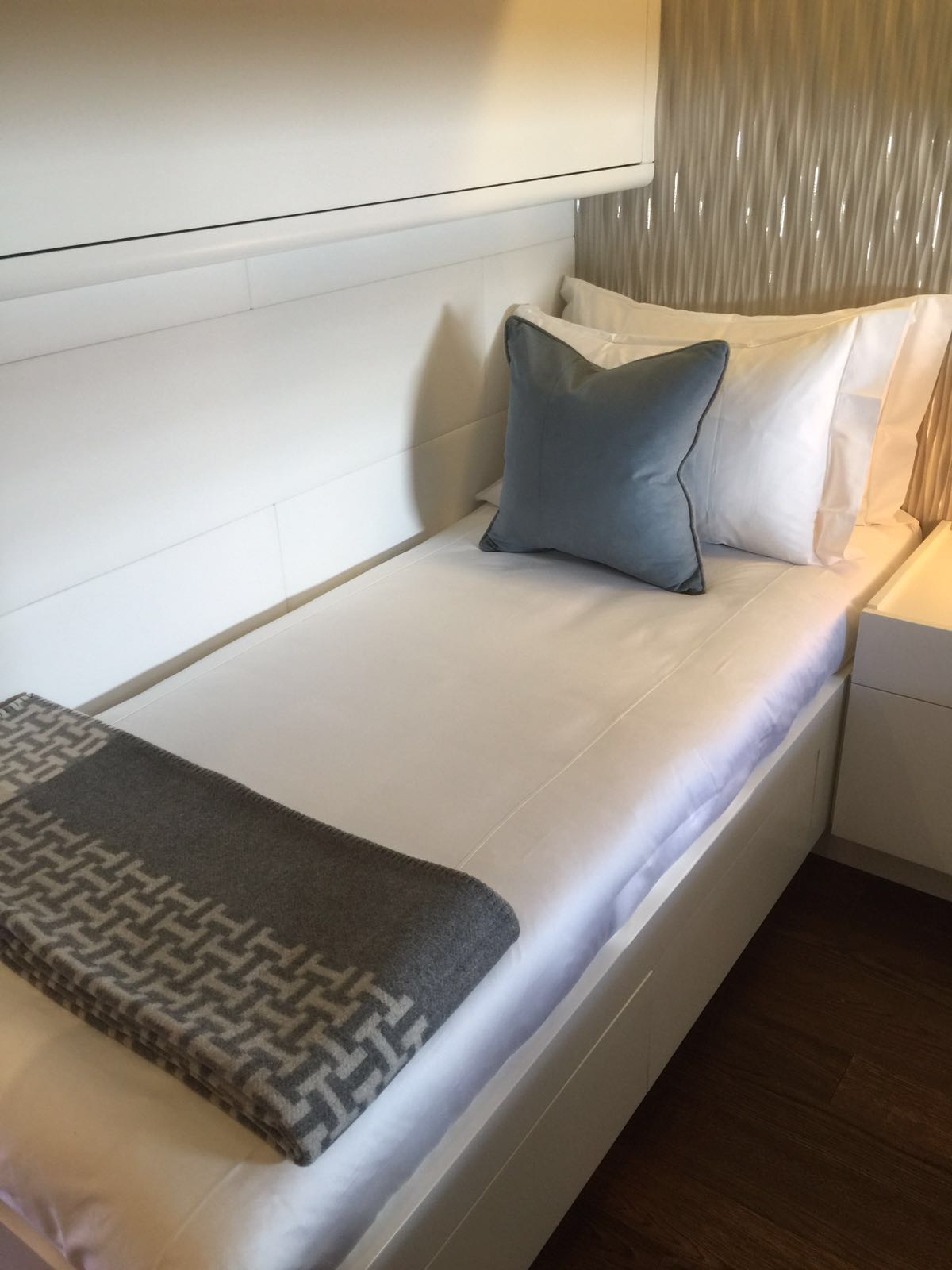 The salon leads out onto the aft deck, an alfresco dining option, seating, two large sun pads and partial shade. For water enthusiasts, the dual port and starboard steps provide effortless access to an extended swim platform and a good array of water toys.