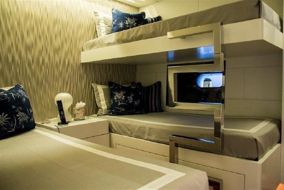 For water enthusiasts, the dual port and starboard steps provide effortless access to an extended swim platform and a good array of water toys. The main deck continues forward where a massive sunpad and large additional alfresco dining area, are perfect for any casual occasion or simply soaking up the sun.