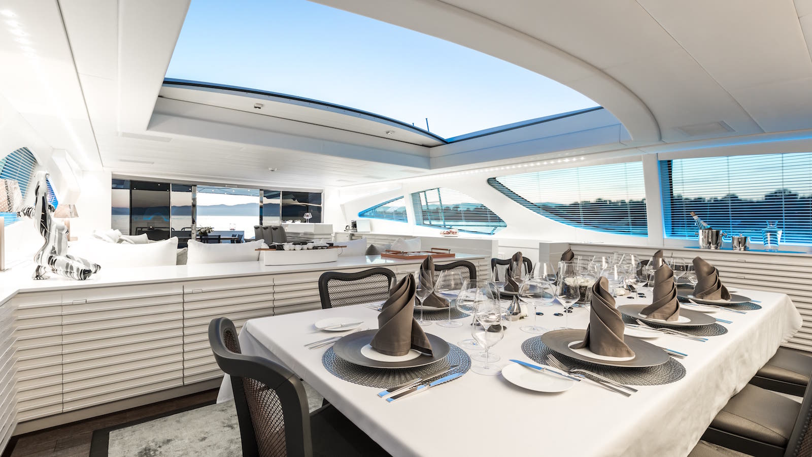 Motor yacht BEACHOUSE features a light and airy interior décor. Her fresh ambience is that of a luxurious beach house.