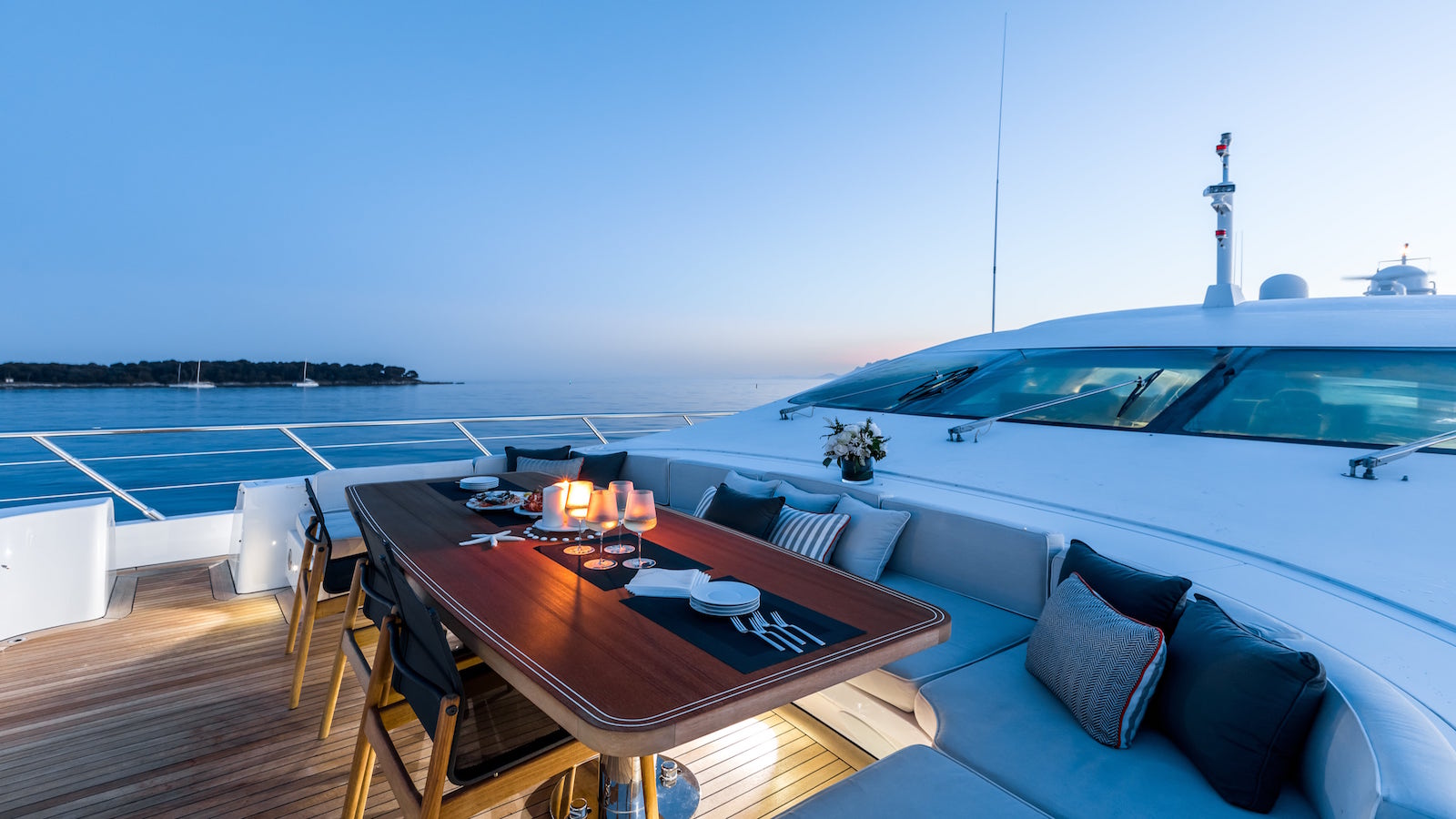 Motor yacht BEACHOUSE features a light and airy interior décor. Her fresh ambience is that of a luxurious beach house.
