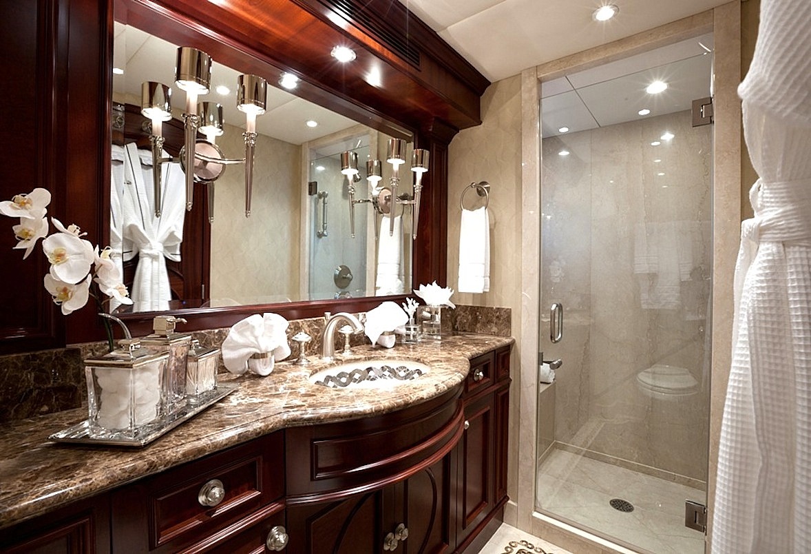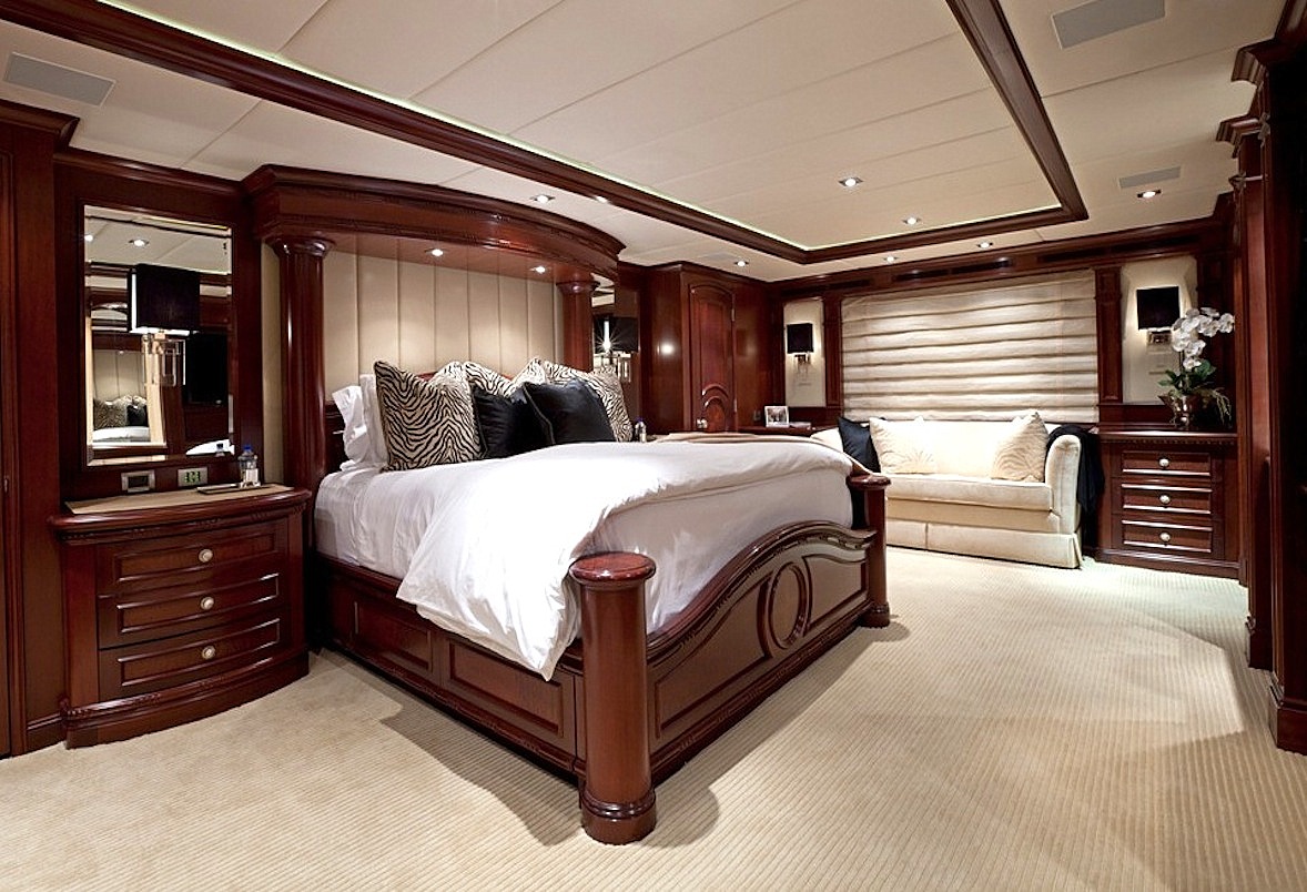 Cocktails’ full beam master cabin can be found in the forward section of the main deck. It’s extremely luxurious and comfortable having beautiful furnishings in amazing colours, a truly spectacular en suite bathroom along with a sofa and desk. A broad corridor connects the bedroom and living space so you’ll never feel confined. Two separate entrances let guests access the suite’s bathroom and shower room for a his and hers layout, perfect.