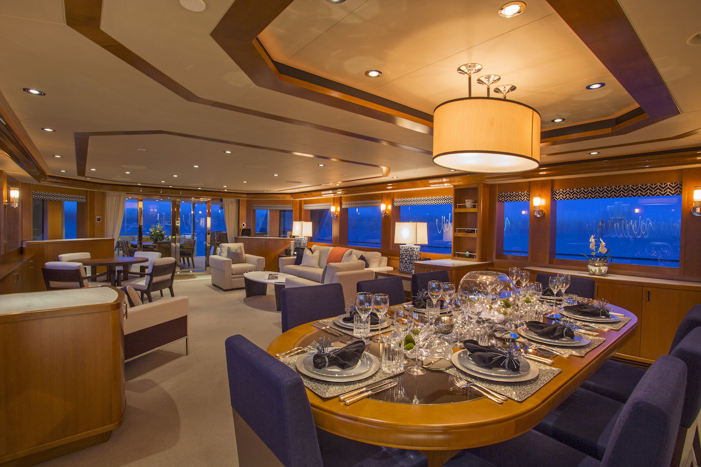 One last lounge can be found in the forward pilothouse, which has a sofa and table to starboard behind the Captain's chair so that guests can take in the forward views whatever the weather in a climate-controlled environment.