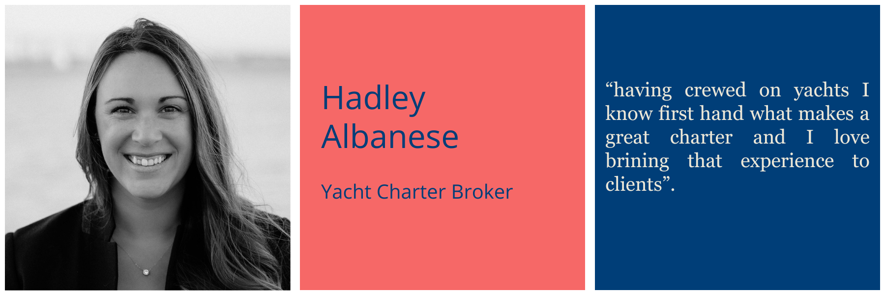Those years crewing on yachts have given Hadley first hand experience of what makes a great charter, and she enthusiastically brings her knowledge to the retail charter side of the industry. Additionally, her travels around the world have given her a curiosity to continue to explore and even maybe add to her language skills which currently include Swahili.