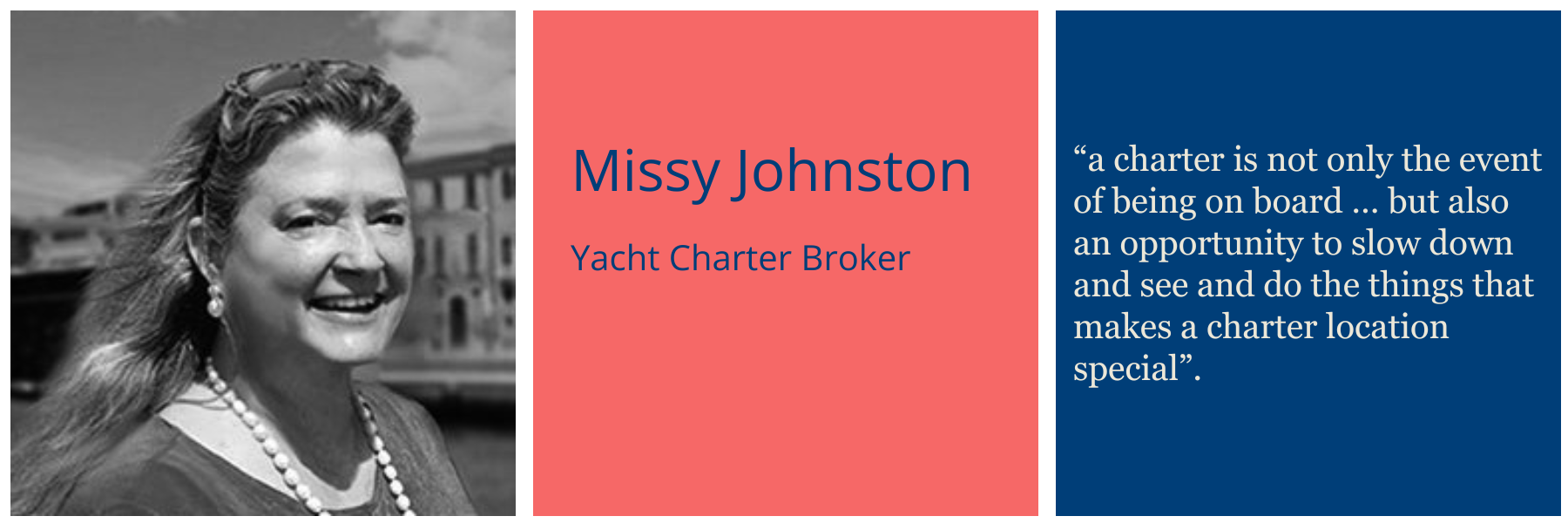Missy is passionate about creating outstanding charters and ensuring guests explore the unique experiences available in their chosen charter location. Whether that be an adventure through the culinary or wine highlights of the area or excursions to sites of historic interest.