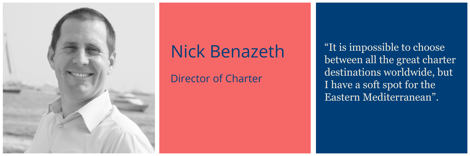 Nick's favourite place to cruise: "It is impossible to really choose between all the great charter destinations worldwide, but if pushed, I have a soft spot for the Easter Mediterranean – from the multitude of islands and bays of Croatia, to the diverse natural beauty and local hospitality of Greece and Turkey."