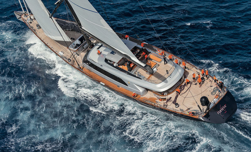 The final vessel in the 10 largest sailing yachts available for charter is all-aluminium sailing yacht PERSEUS³ from Perini Navi. Launched in 2014, she has interior and exterior styling from the shipyard in-house team in collaboration with Ron Holland. Her experienced Owner added many innovations, such as her rigging system and the lifting keel which has become a common addition among performance-based sailing yachts today. The deck Jacuzzi will be a favourite spot for guests to take in the surrounding scenery, with two fold-out beach platforms to extend the already ample sunbathing space on board.