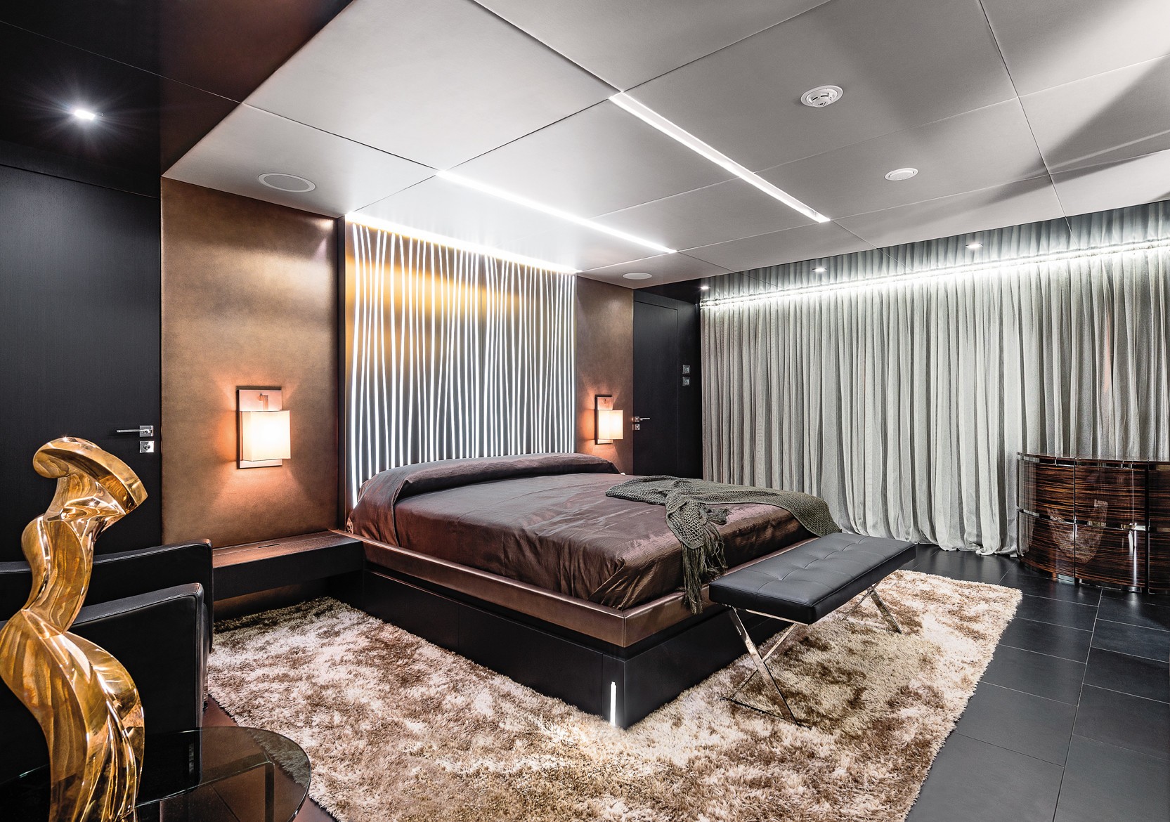 Each cabin has an iPad which controls the lighting, blinds and different entertainment systems. The designer was definitely forward-thinking when creating this splendid vessel. The master suite has a private office with similar recessed lighting to the main saloon. Having white walls and a clean, crisp feel, it’s a very welcoming part of the yacht. In this suite, there are also a couple of well-designed and colourful chairs if you need to chill out.