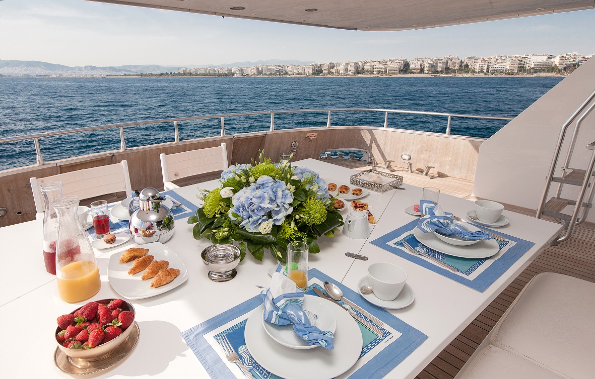 Experience gourmet dining al fresco style with a selection of breads, cheeses, meats and a glass of wine or two. The outdoor deck space is well designed, comfortable and practical. She might not have modern amenities like other yachts such as a Jacuzzi, open-air bar or hammocks, however the uncluttered deck is a place for sheer relaxation.
