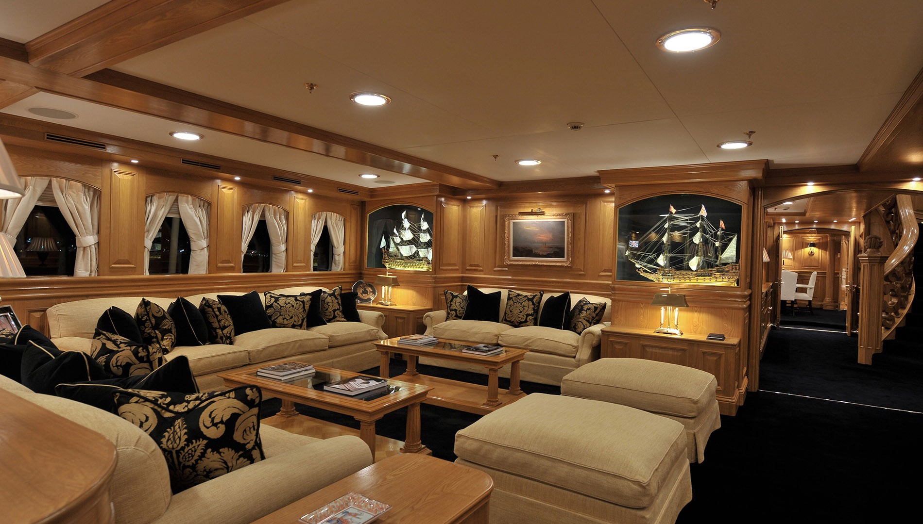 The six beautifully decorated state rooms have also been restyled. There’s a huge master suite stretching across the forward section of the main deck. A private office, lounge, sleeping area, his and hers marble bathrooms complete this luxurious accommodation.