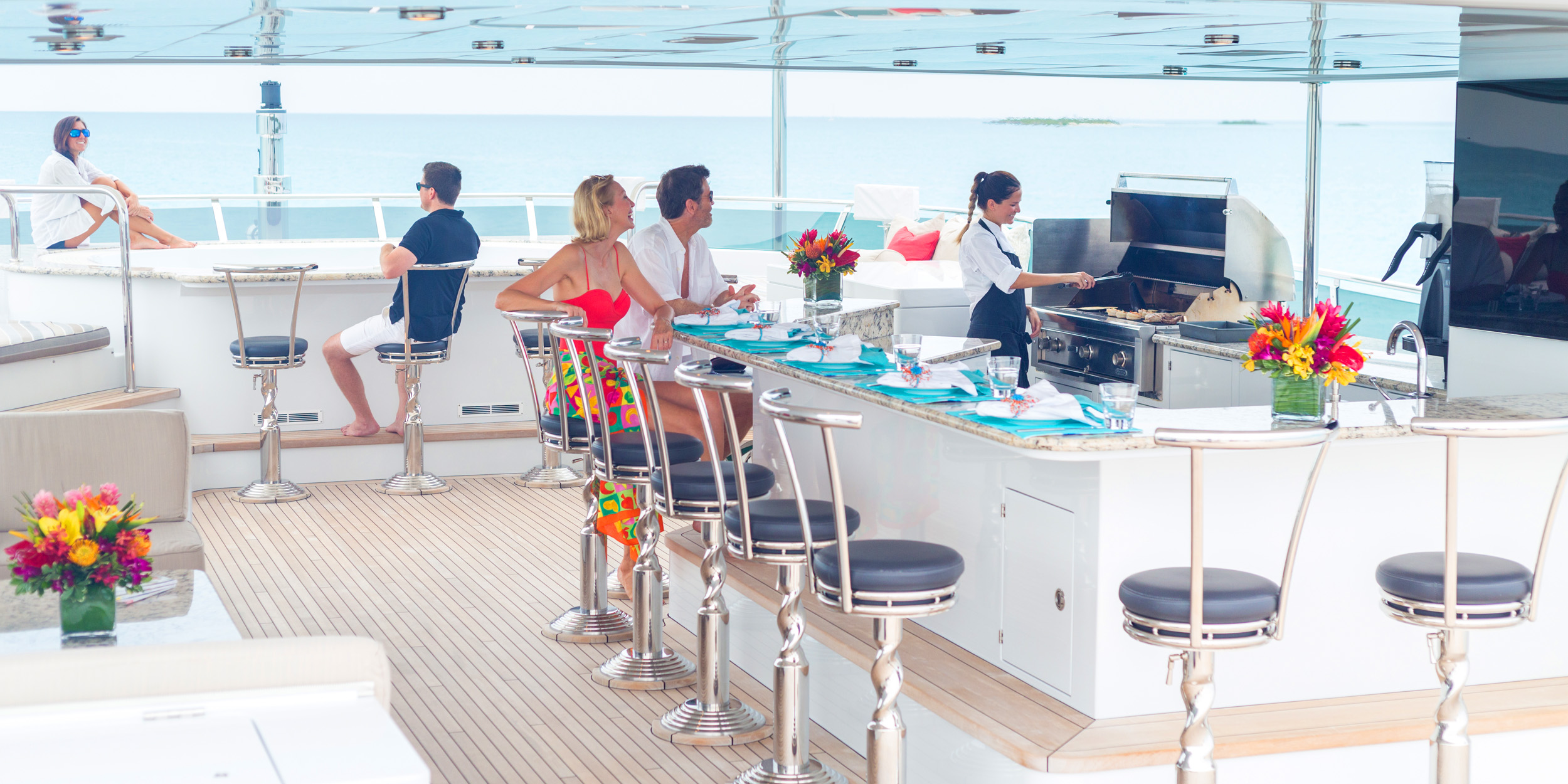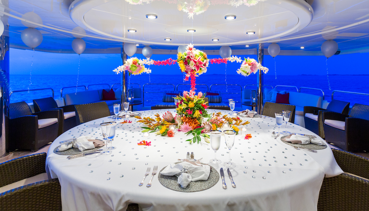 Superyacht REMEMBER WHEN has the exterior space needed for hosting large social gatherings on board, creating a desirable setting for wedding and honeymoon charters, birthdays, New Year's Eve gatherings and other special events.