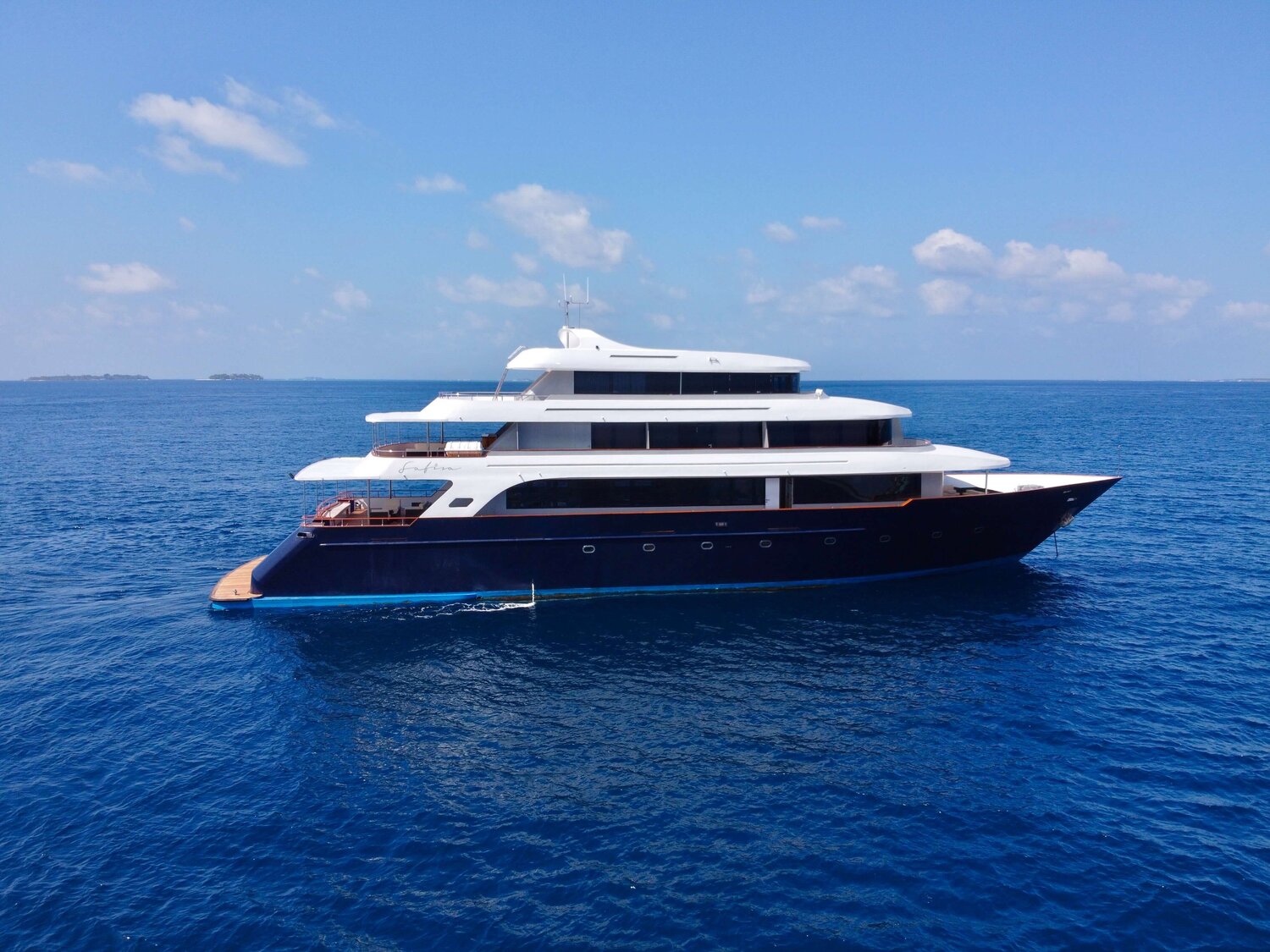 Built in 2017 by Swiss architects from Nuno Santos Pereira, M/Y SAFIRA has a shallow draft for accessing dive sites in popular and remote locations such as the Maldives.