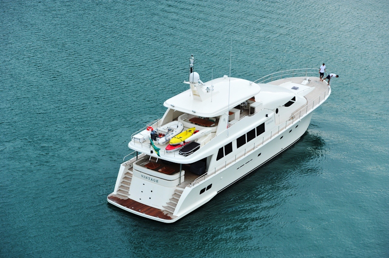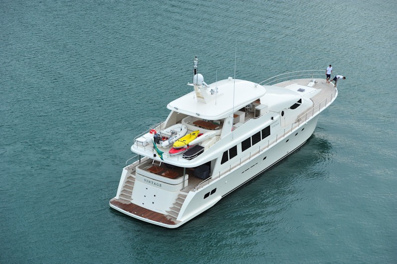 Motor yacht VINTAGE was built in 2010 by Costa Verde featuring naval architecture by Tom Fexas. Yacht VINTAGE measures 28.04 Meters (92 Feet) in length.