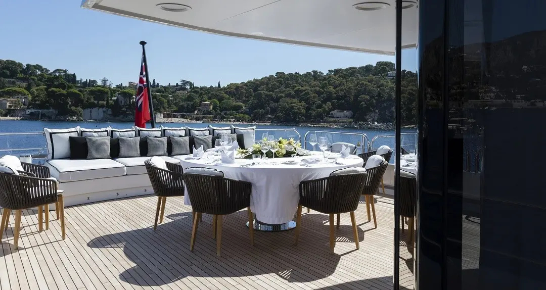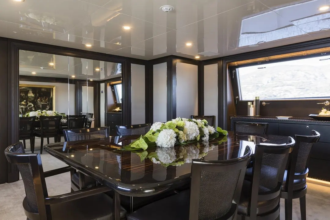 There are numerous dining areas on board, including alfresco dining setups as well as a more elegant and formal dining setting in the main saloon.