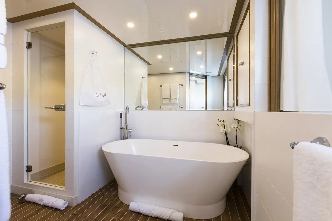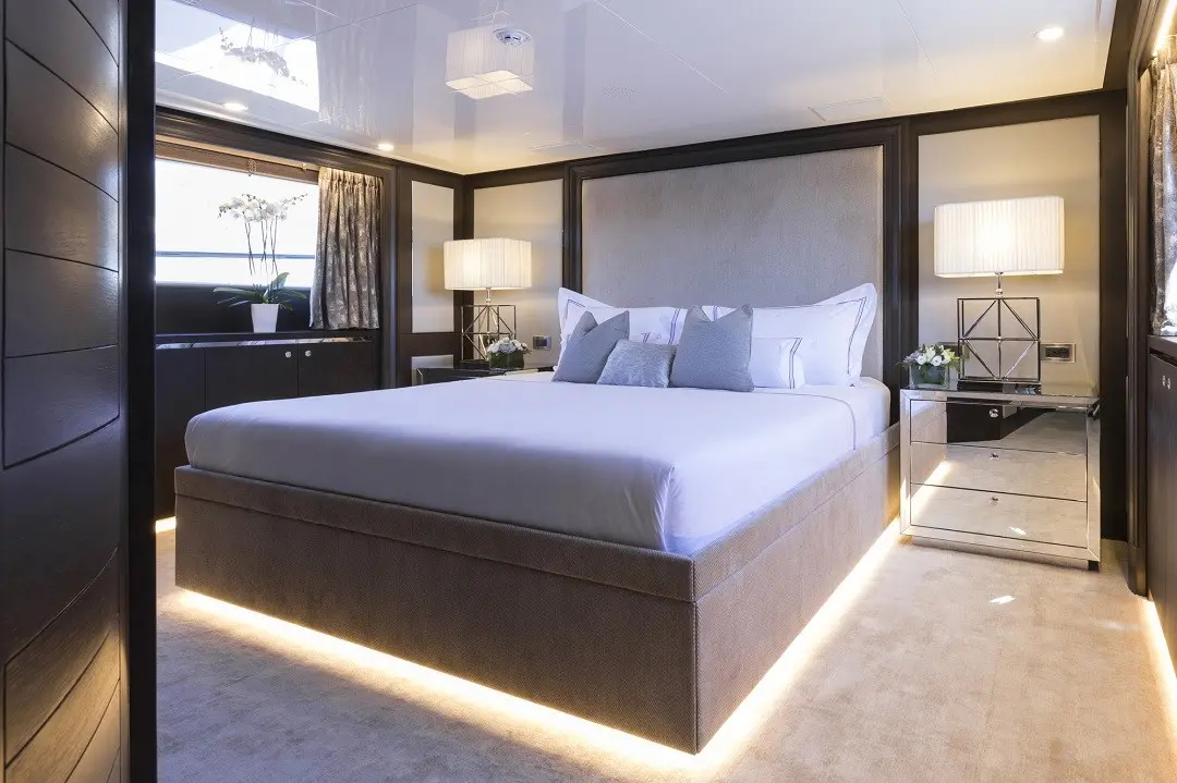 DOJO offers accommodation in five elegant and luxuriously appointed staterooms for up to 11 guests onboard. All cabins offer ensuite bathrooms and luxury amenities.