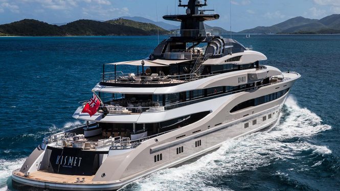 The grand styling onboard 95.2m/312.4ft Lürssen luxury yacht KISMET has elements of Asian and Classical design, but overall she is unmistakably art deco. Her strong, masculine interiors from Reymond Langton Design treat guests to a piano lounge with a fireplace, a cinema, beauty salon and a private deck for the Owner. The accommodation provides seven en-suite cabins for up to 12 guests, who also have a basketball court, DJ station, Jacuzzi and pool to make the most of life outdoors.