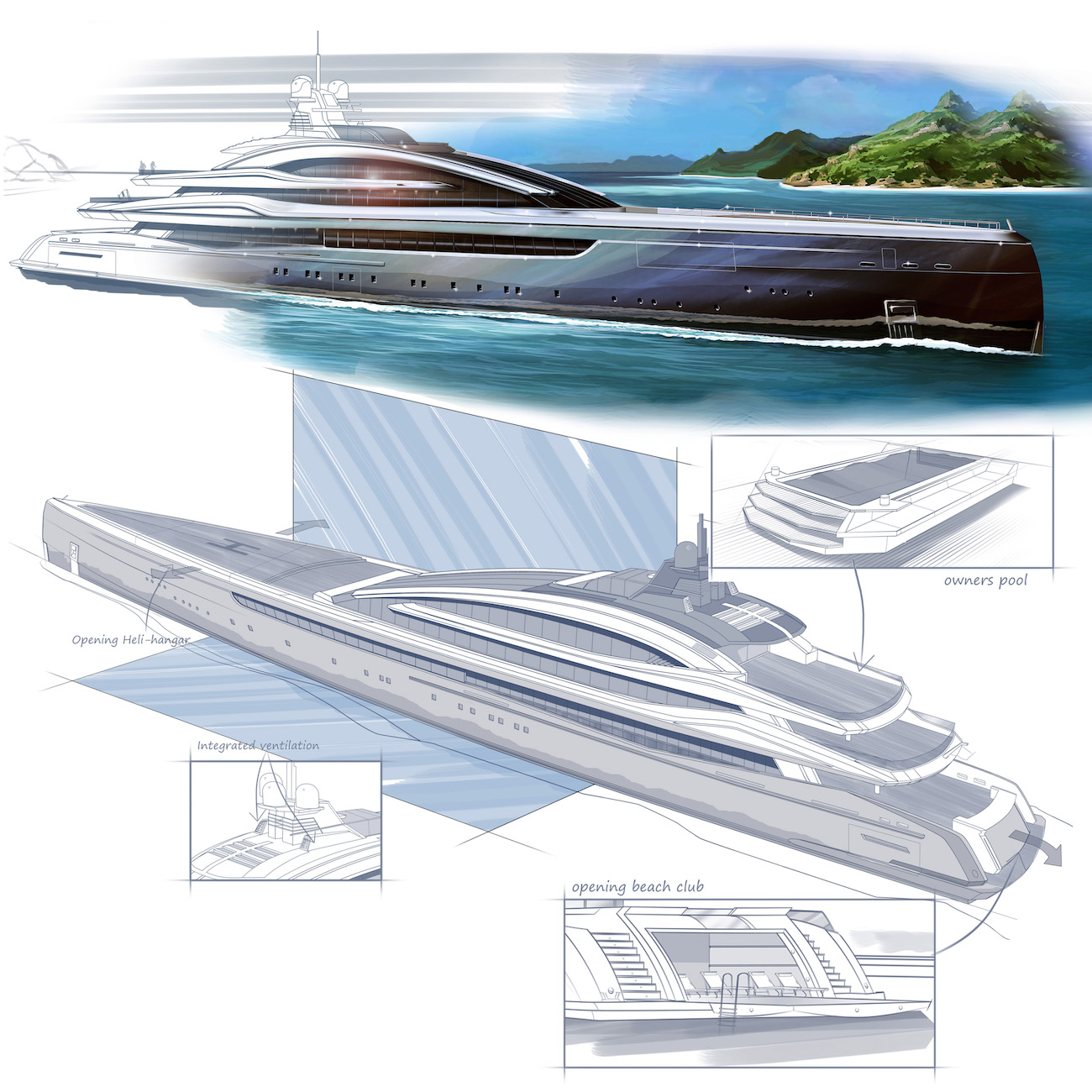 This image is featured as part of the article New 100m CROSSBOW Superyacht Concept by Hydro Tec.