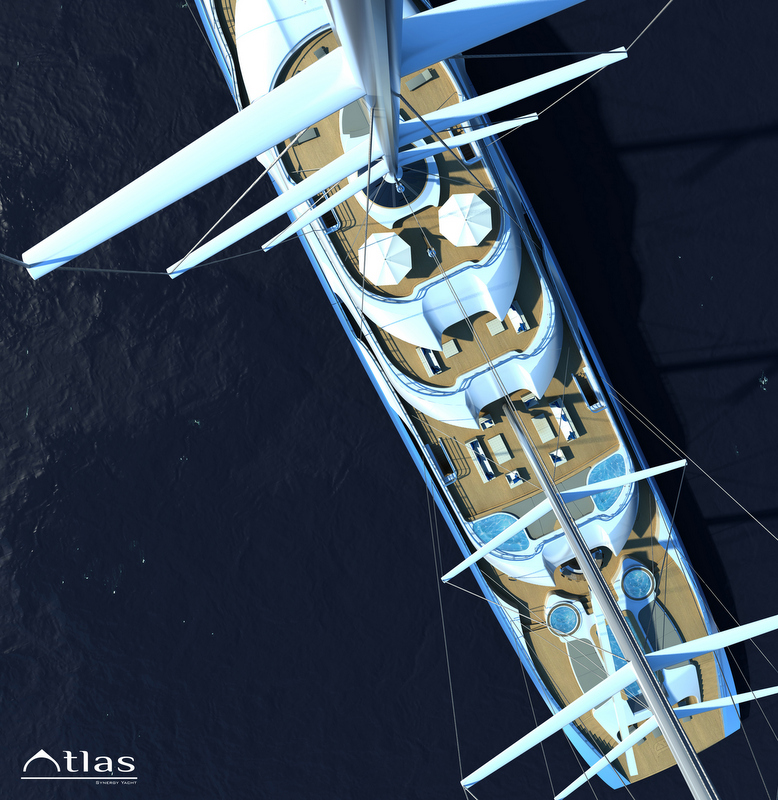This image is featured as part of the article The new 110m motor sailor yacht Project ATLAS by H2 Yacht Design and Laurent Giles Superyacht Architects.