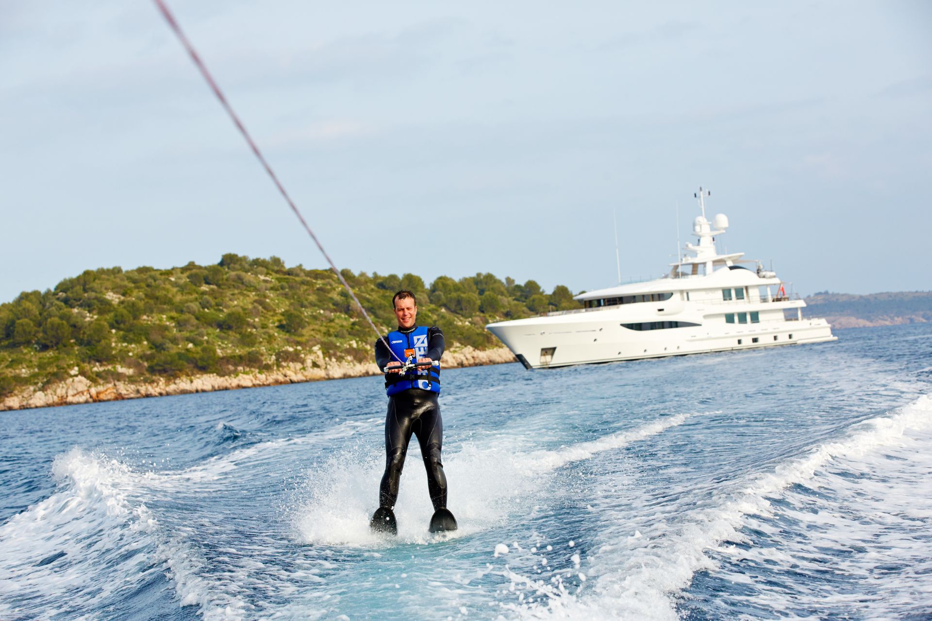 This image is featured as part of the article 17 Superyachts with the Coolest Water Toys Collection available for Charter.