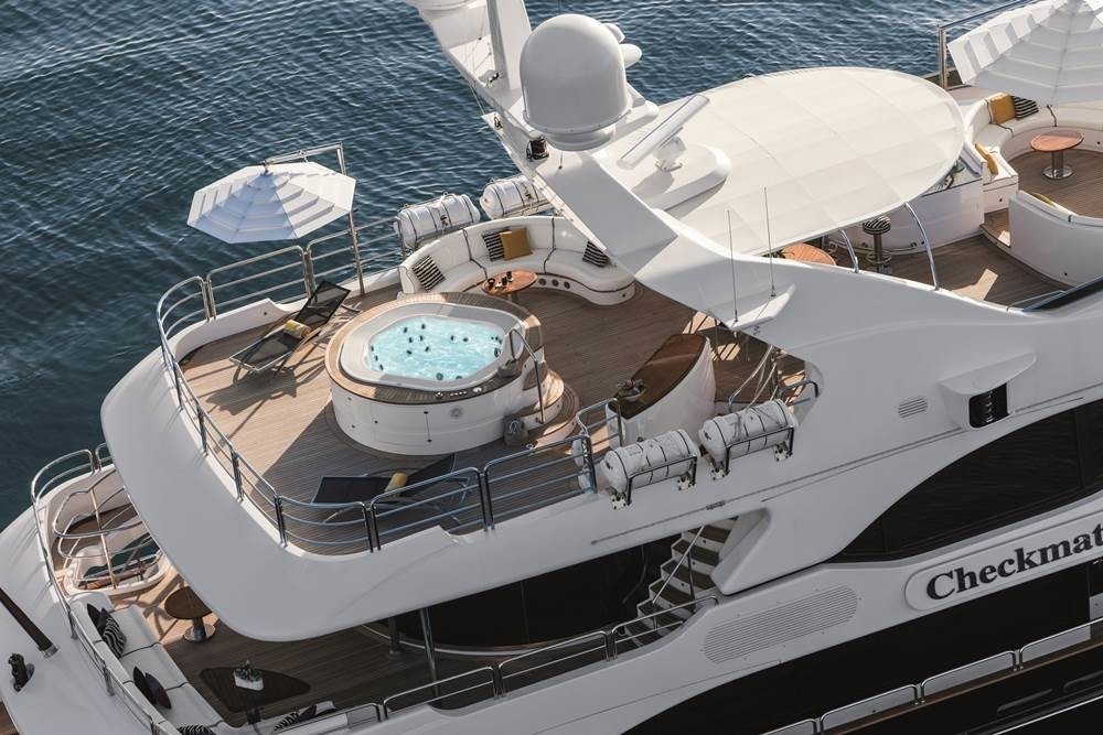 Please contact CharterWorld - the luxury yacht charter specialist - for more on superyacht news item "Aerial view of the sun deck with a Jacuzzi".