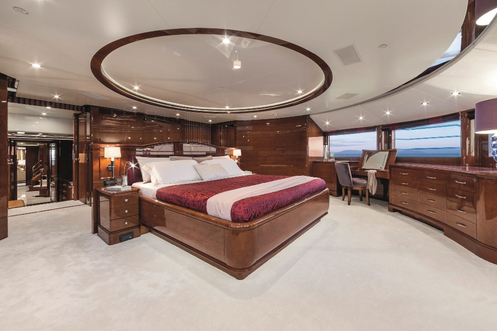 Please contact CharterWorld - the luxury yacht charter specialist - for more on superyacht news item "Spacious master stateroom with plush furnishings and elegant wooden furniture".
