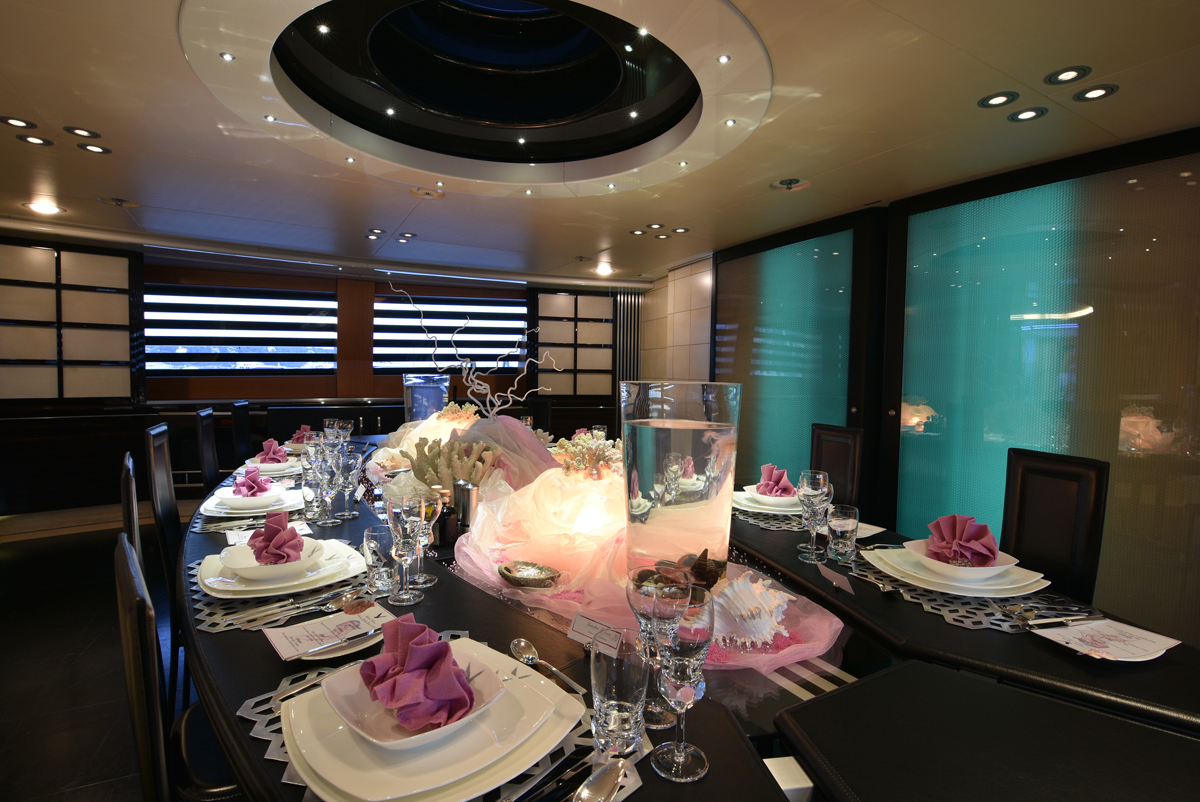 Please contact CharterWorld - the luxury yacht charter specialist - for more on superyacht news item "Maltese Falcon - Formal dining area 00001".
