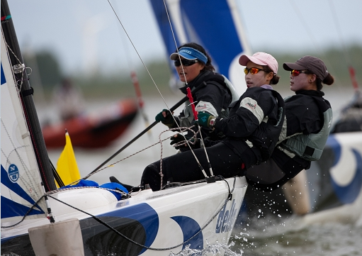 Sailing will resume on Thursday with the last chance for classes racing in groups to qualify for the Gold fleet. The Women Match racers will finish the opening round robin.