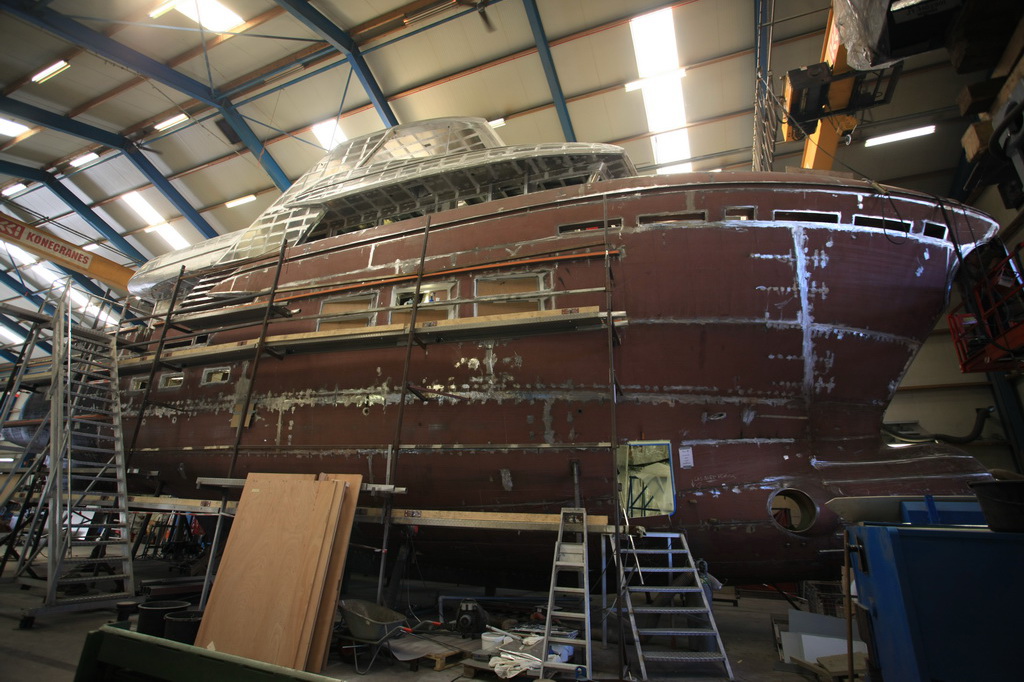 NEW 24m Drettmann Explorer Yacht (DEY) leaves her shed at Acico Yachts