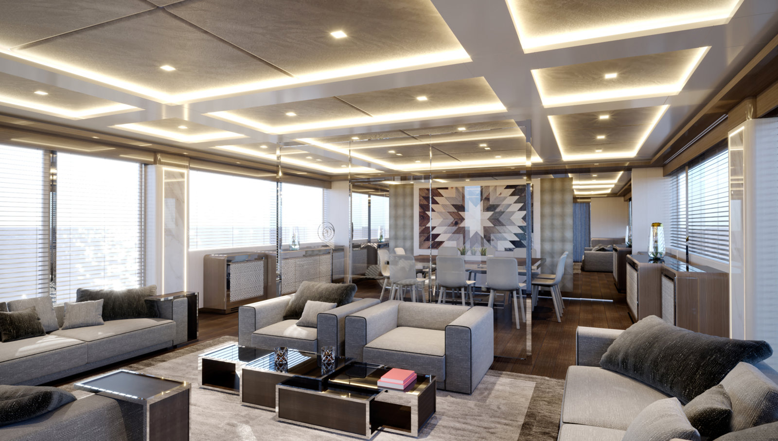 Please contact CharterWorld - the luxury yacht charter specialist - for more on superyacht news item "Dominator 38M Tri Deck salon render".