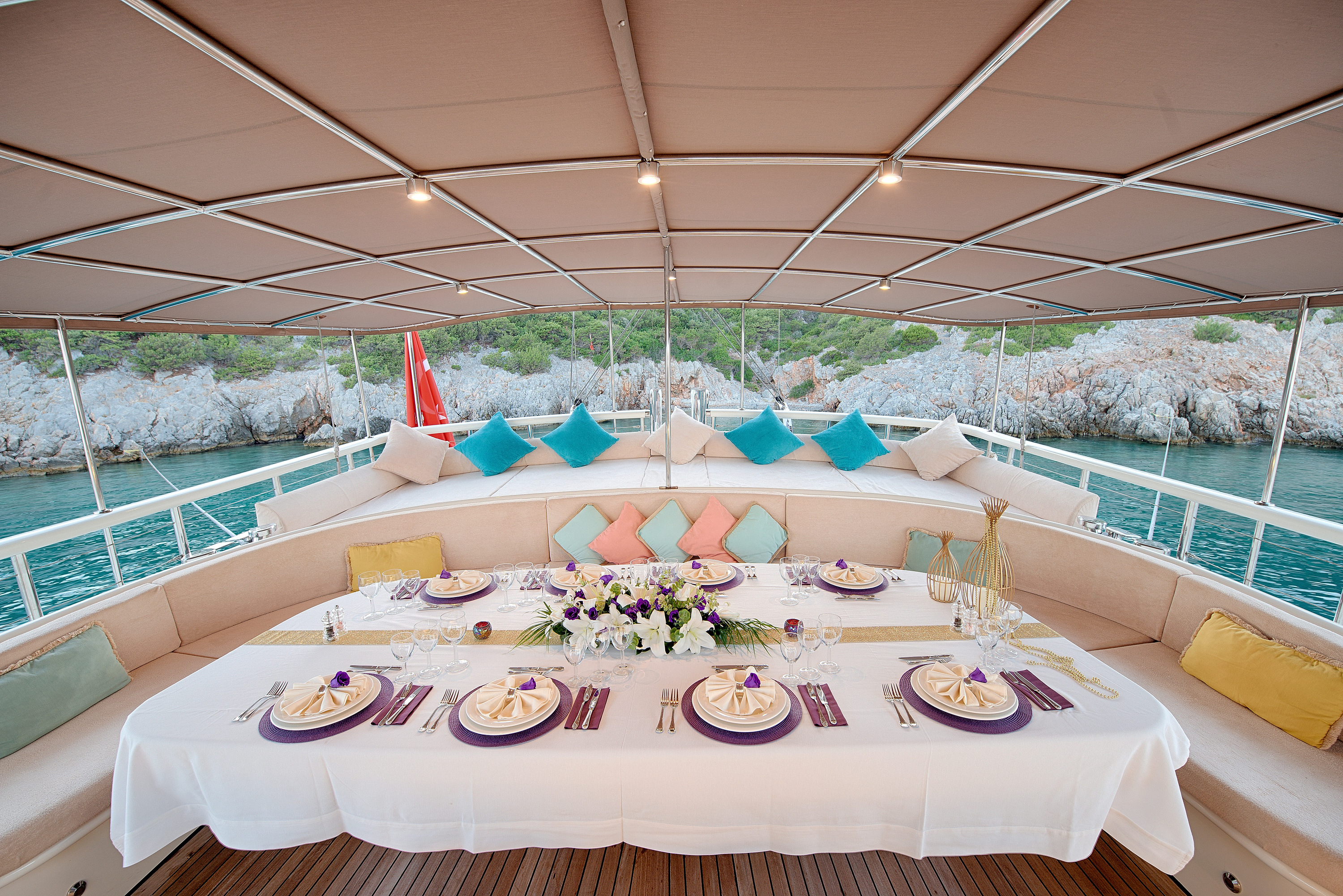 This image is featured as part of the article 40m Luxury Gulet Yacht QUEEN OF SALMAKIS offering 10% discount in Turkey.
