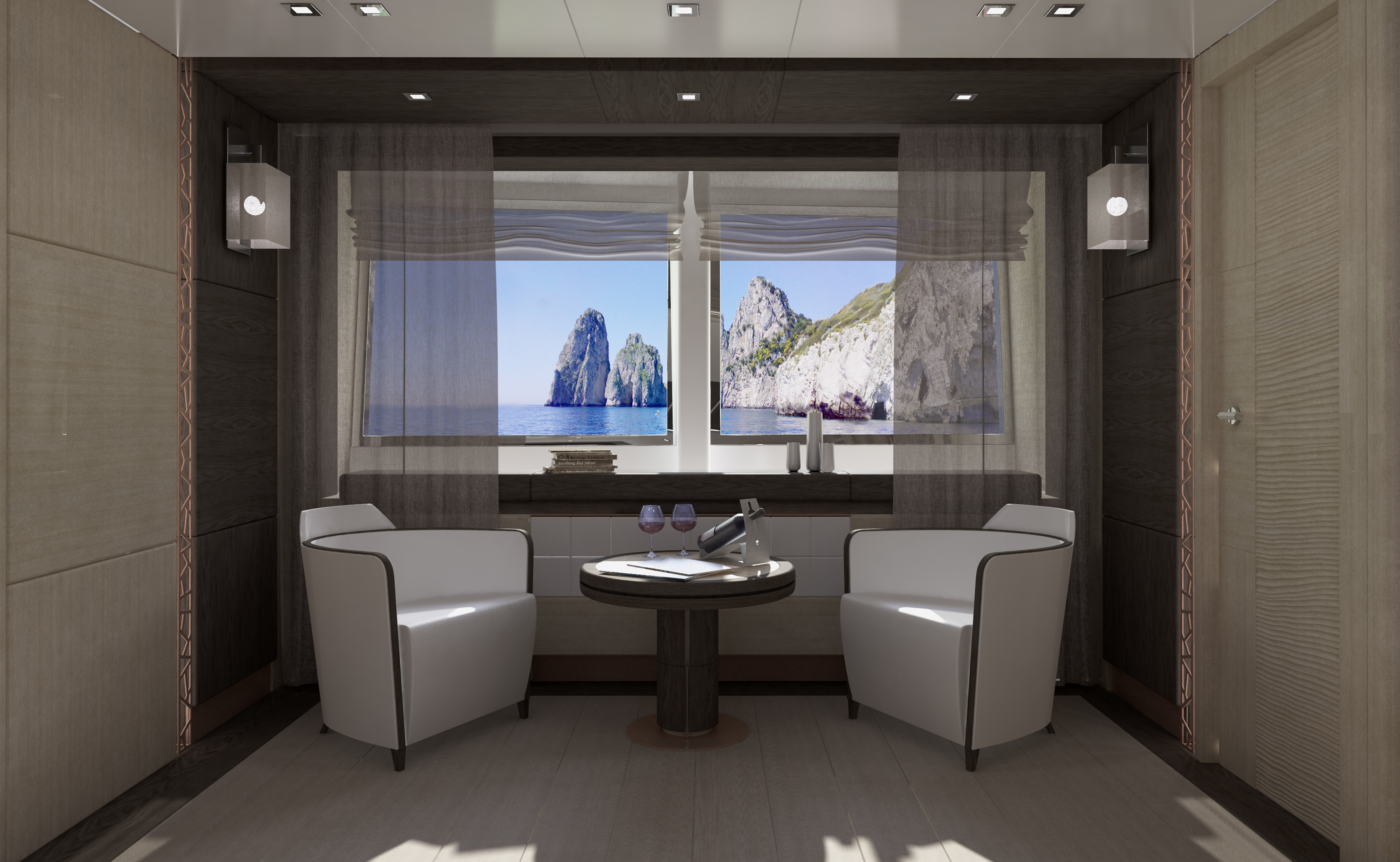 Luxurious interior abaord the Palumbo motor yacht Columbus Sport 130 Hybrid
