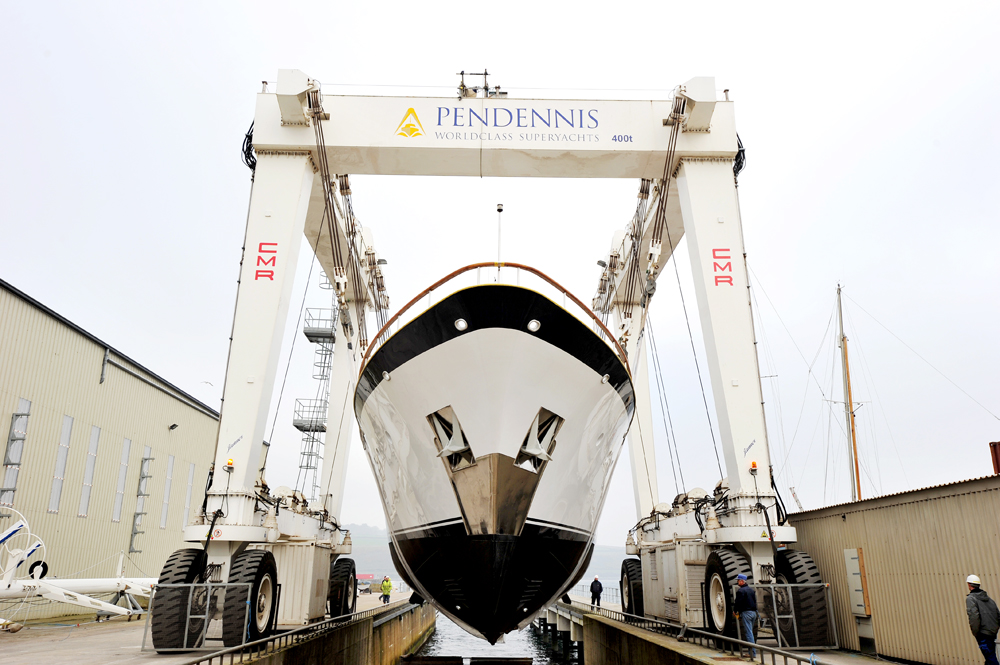 1972 Feadship motor yacht Heavenly Daze at Pendennis Shipyard in April 2012 during her refit