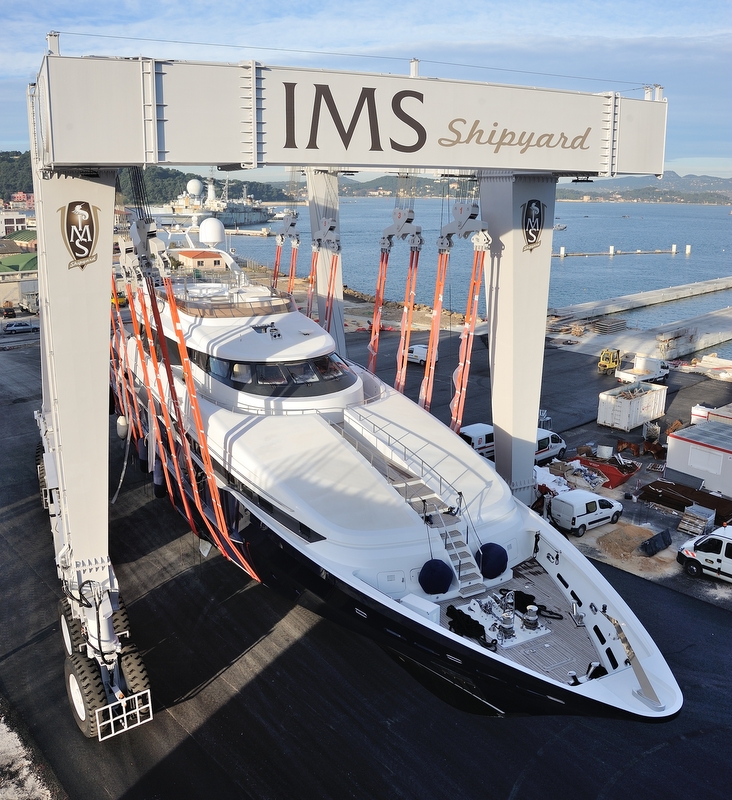 This image is featured as part of the article 43m Heesen superyacht SISTER ACT – The first yacht hauled out on new IMS 700 site.