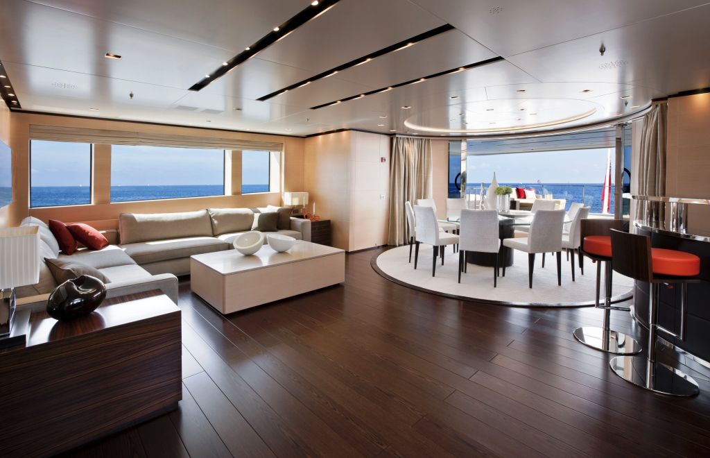 Sanlorenzo’s first steel megayacht The 46 Steel super yacht Lammouche Upper Salon and Dining – Photo Credit Sanlorenzo