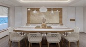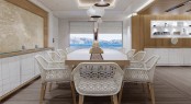 Omega Architects have developed exterior design with adding some sleek lines, trendy cutaways in the side bulwark and Heesen’s “pelican” bow, making the superyacht look elegant and classic, while still featuring contemporary exterior solutions. Full-height windows provide a luxury of having plenty of day light and panoramic views.