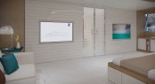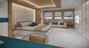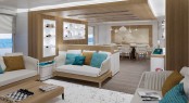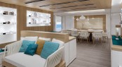 Hot Lab design studio based in Milan, have developed an outstanding design concept especially for the project Cayman. It is described as “Exotic Modern” and based on light and natural tones and textures for a relaxed atmosphere on board. Accommodation is offered in a full-beam owner’s star room, two double cabins and two twin guest cabins for a total of 10 guests. Cayman will also be able to accommodate a crew of 7.