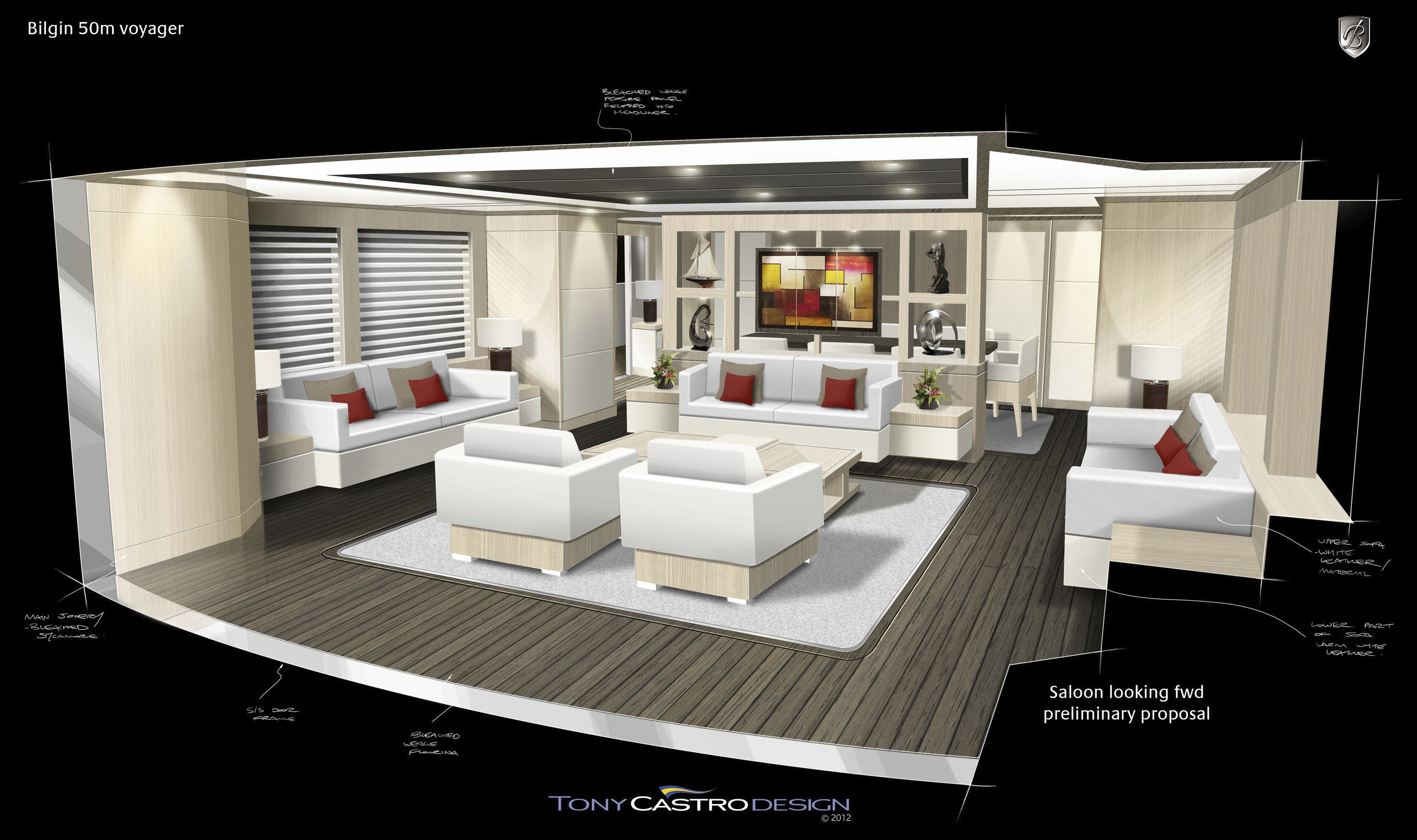 52m Bilgin Voyager 170 Yacht by Tony Castro – Saloon looking forward