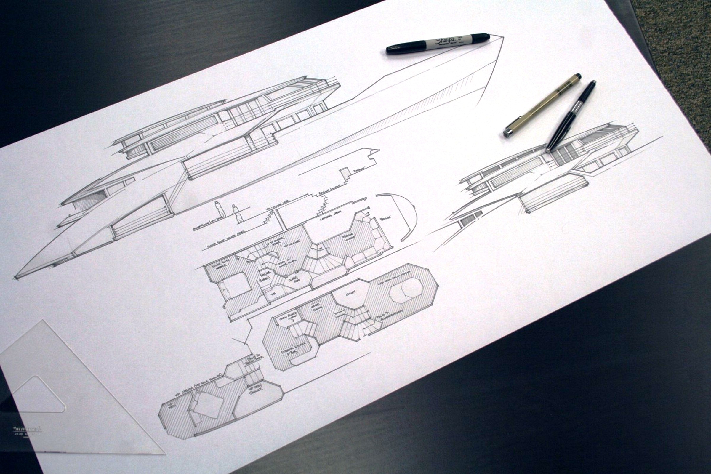 Please contact CharterWorld - the luxury yacht charter specialist - for more on superyacht news item "Original Concept Sketch of the PCE53 motor yacht concept by Donald L. Blount and Associates".