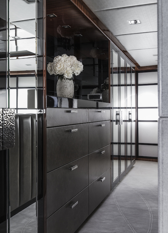 In the Owners’ suite H2 opened up the space by removing the headboard partition to bring some natural light into the wardrobe space.