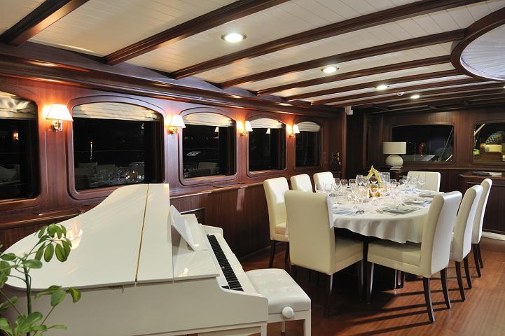 Please contact CharterWorld - the luxury yacht charter specialist - for more on superyacht news item "Formal dining area and a baby grand piano".