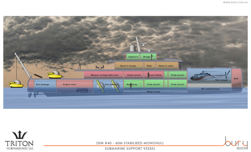 This image is featured as part of the article New 60m expedition yacht concept by Bury Design.